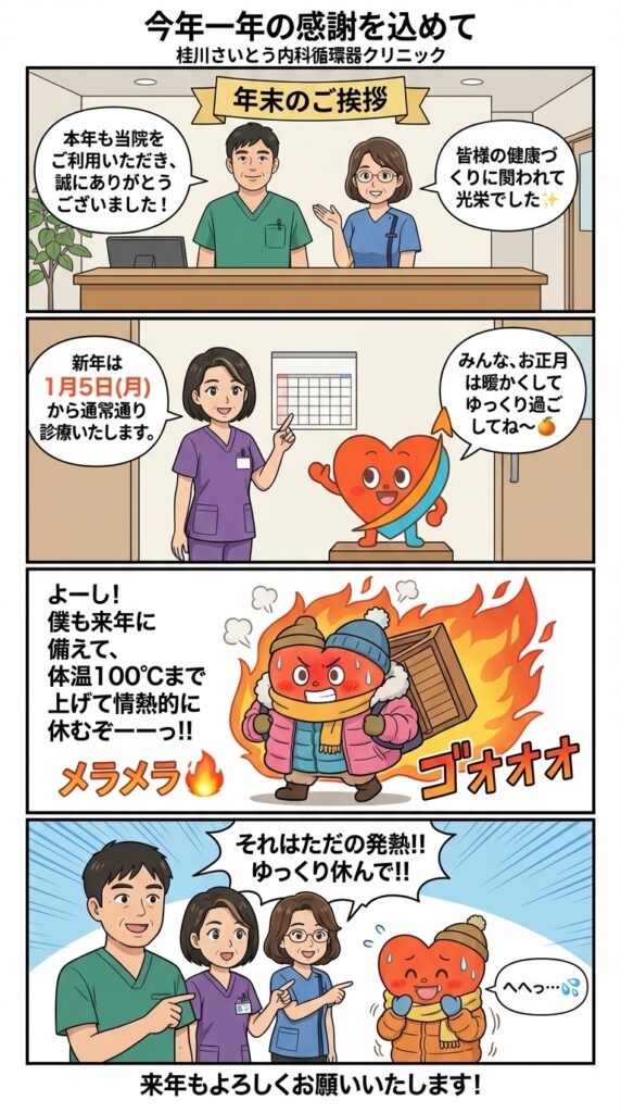 本日午前の発熱外来をもちまして、2025年の診療はすべて終了いたしました。