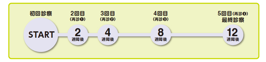 標準的な禁煙治療のスケジュールでは,12週間にわたり合計5回※の診察が行われます。
